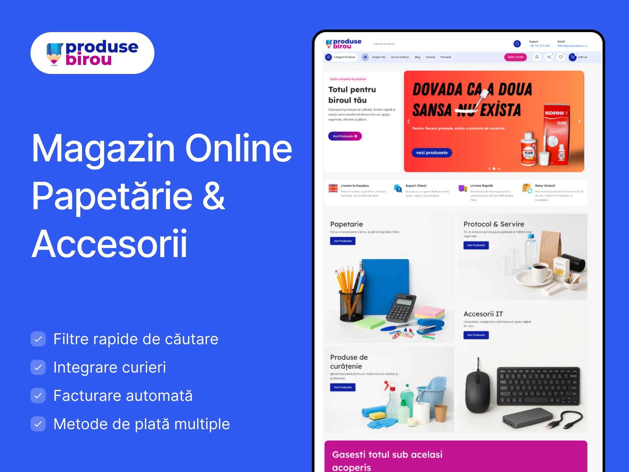 Vinde ușor produse sau servicii printr-un magazin online rapid, sigur și ușor de administrat. Totul personalizat pentru brandul tău.